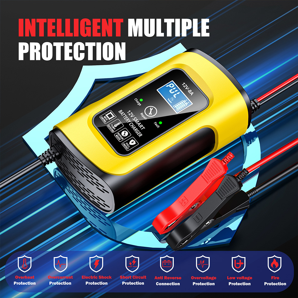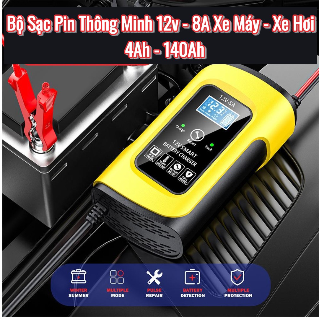 Bộ Sạc Ắc Quy 12V Thông Minh 8A – Từ 4Ah Đến 140Ah Cho Ô Tô Xe Máy. Đầy Pin Tự Ngắt