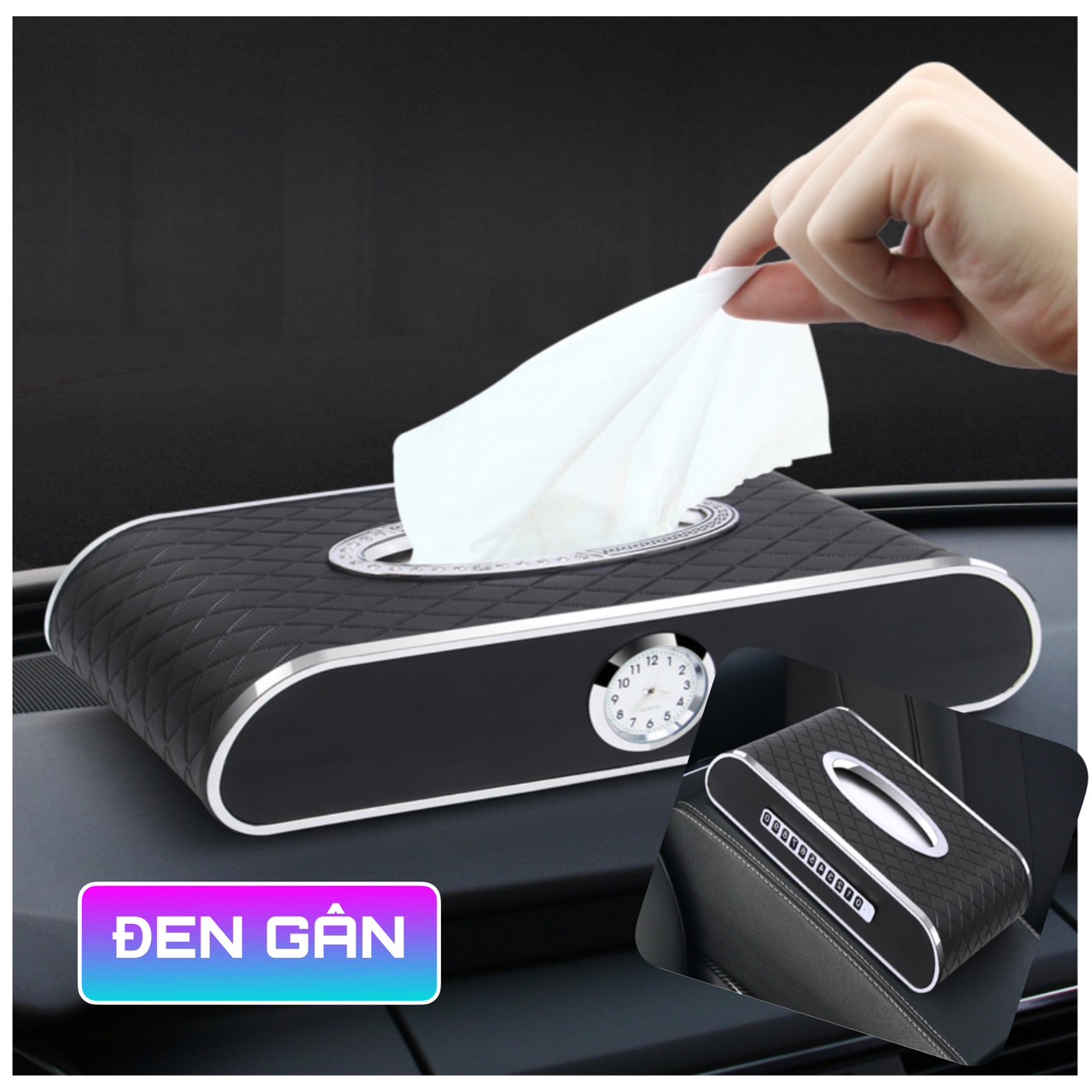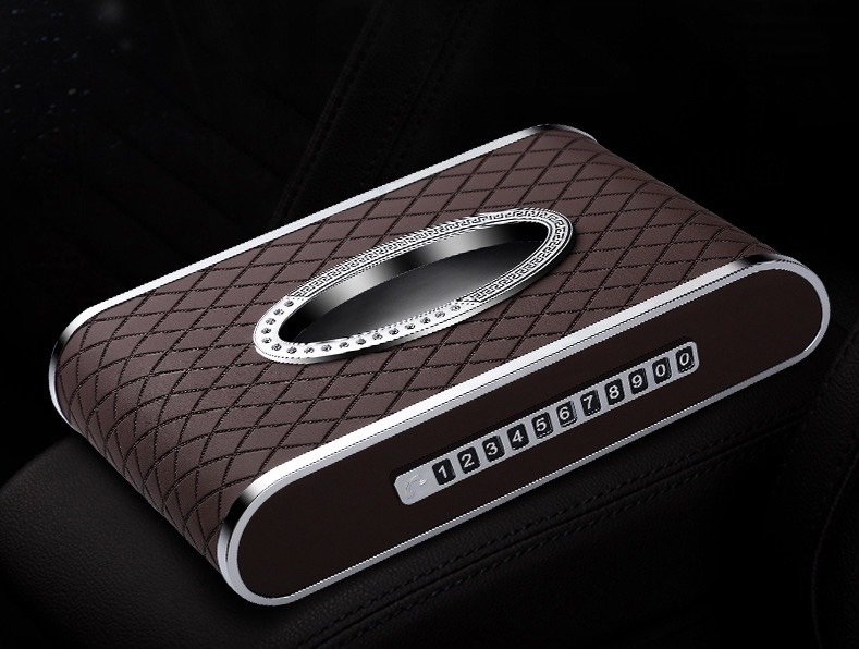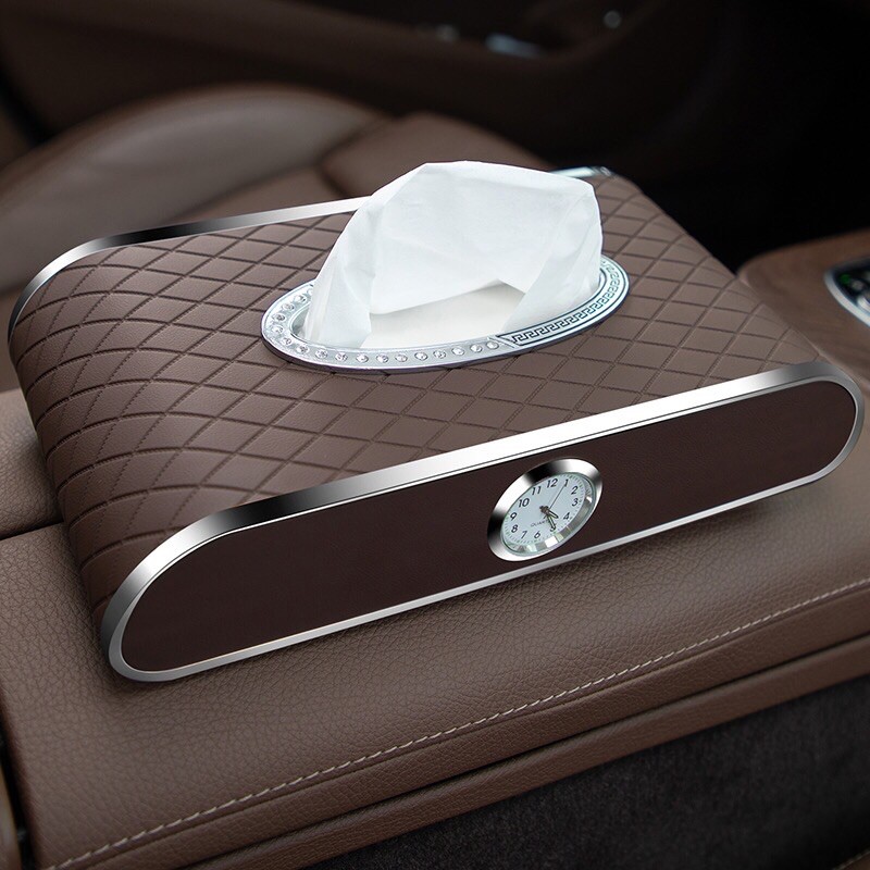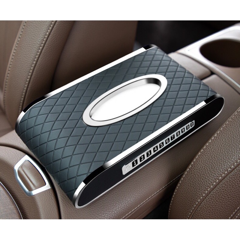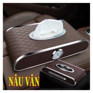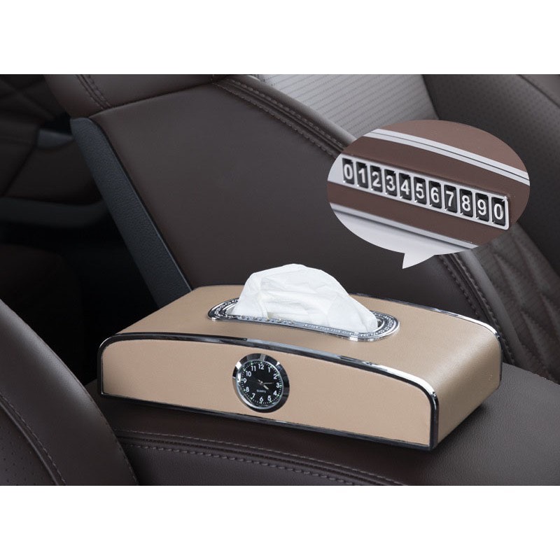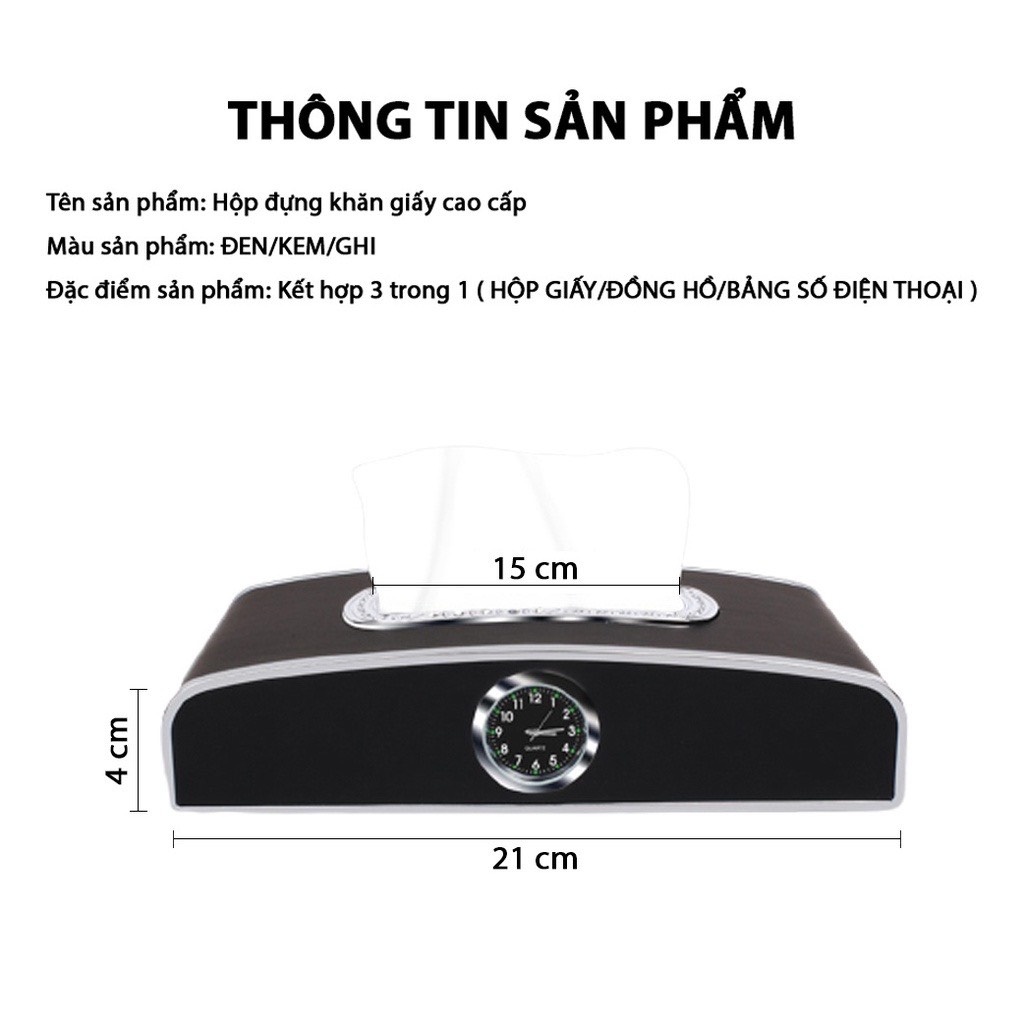 Hộp đựng khăn giấy ô tô kết hợp bảng ghi số điện thoại và đồng hồ – Hàng Cao Cấp