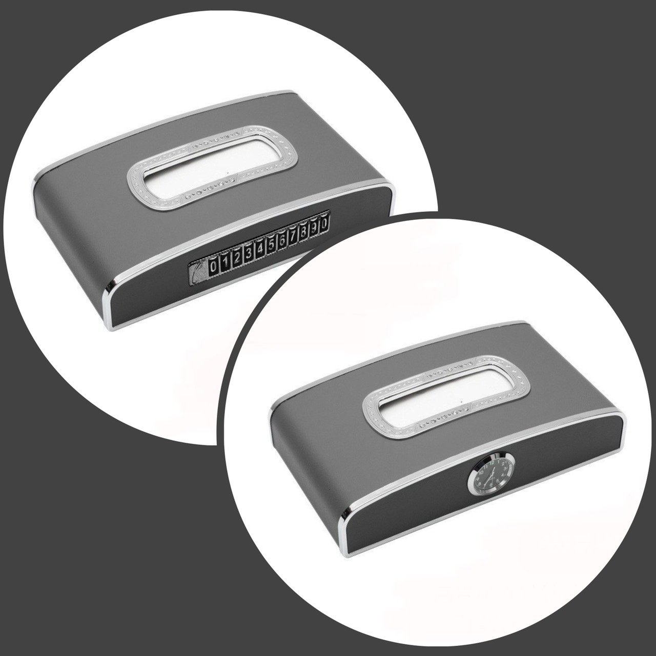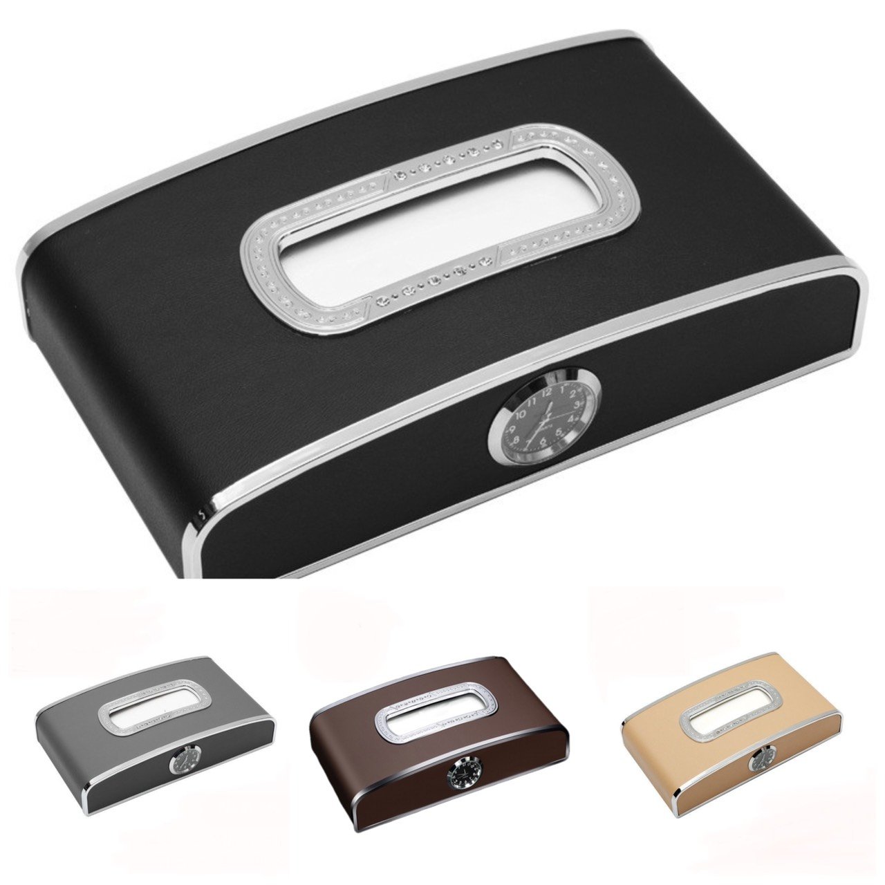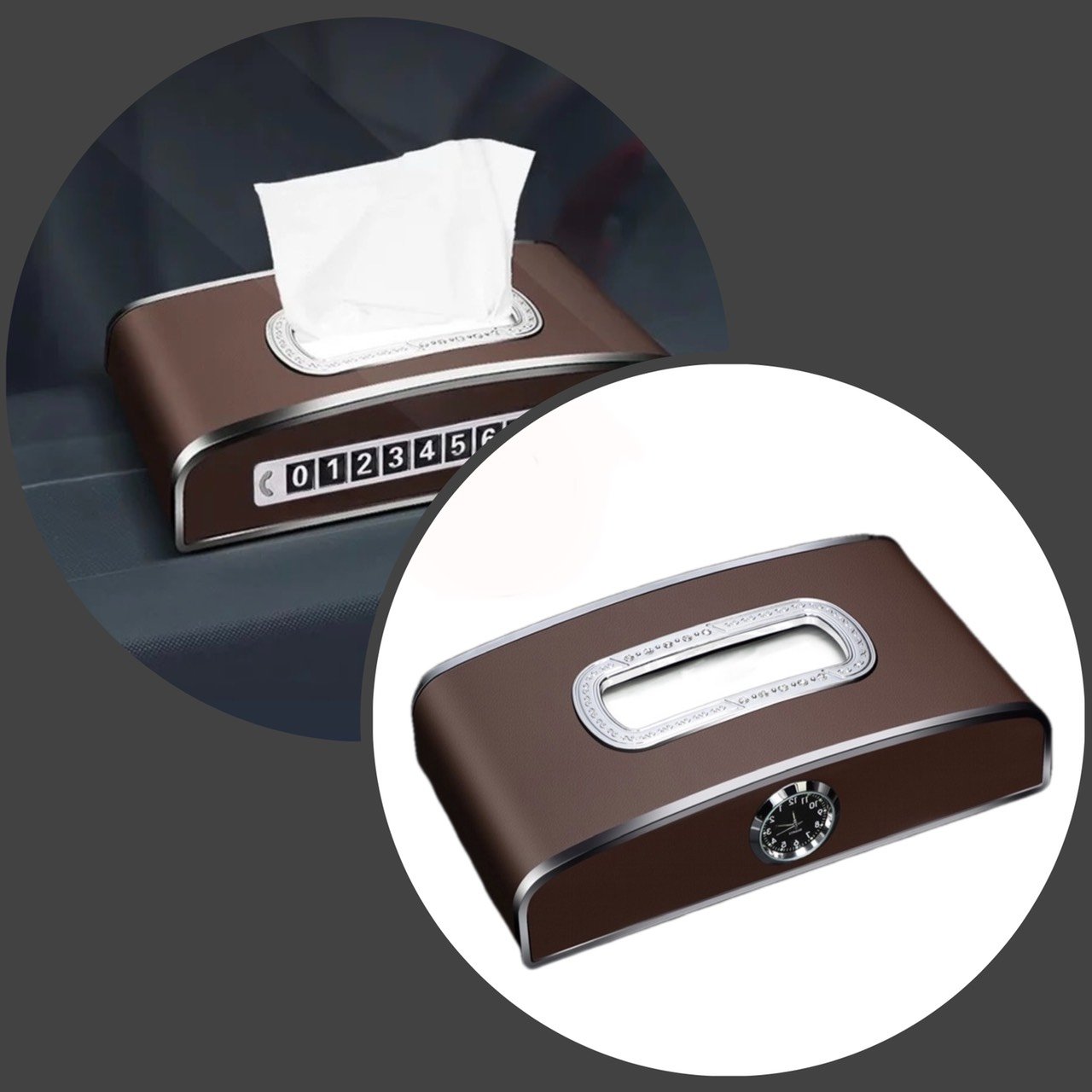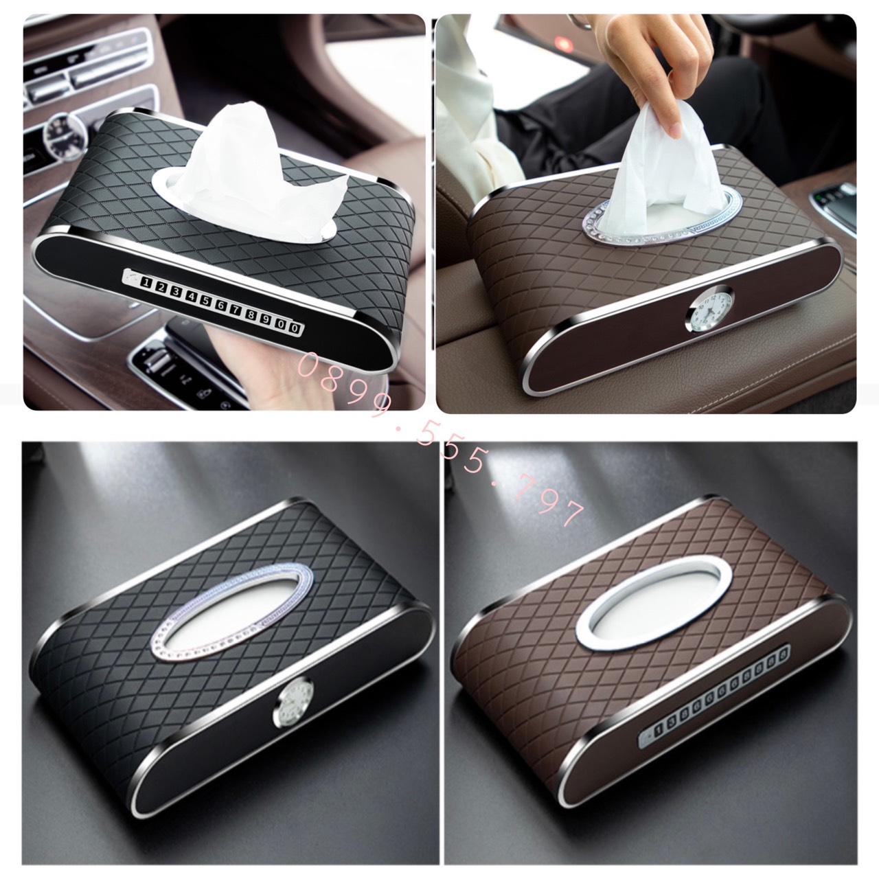 Hộp đựng khăn giấy ô tô kết hợp bảng ghi số điện thoại và đồng hồ – Hàng Cao Cấp