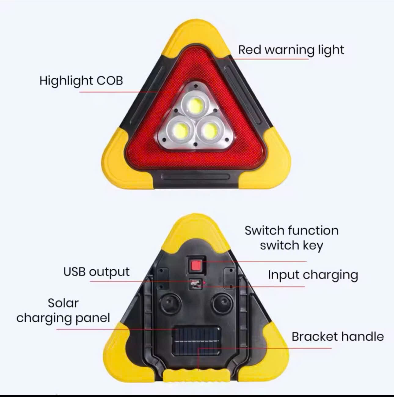 Tam giác cảnh báo đỗ xe LED . 4 chế độ cảnh báo + 2 cổng USB sạc điện thoại